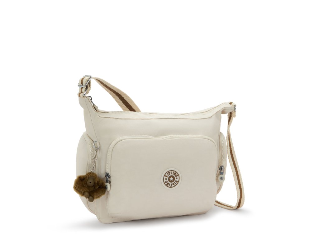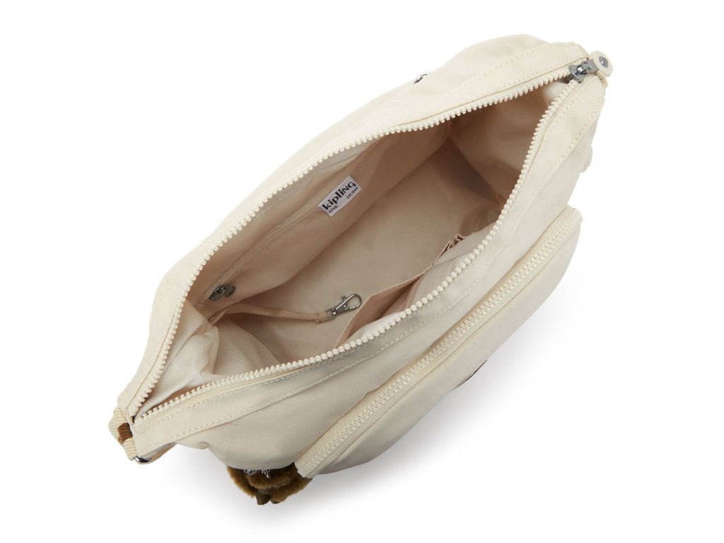 Veľká dámska crossbody kabelka Kipling GABB B Soft Sand spája elegantný béžový dizajn s praktickým členením vreciek. Hlavná komora, vnútorné aj vonkajšie vrecká a prívesok na kľúče zaisťujú dokonalú organizáciu vecí. Ideálna kabelka do mesta, na cestovanie aj každodenné nosenie.