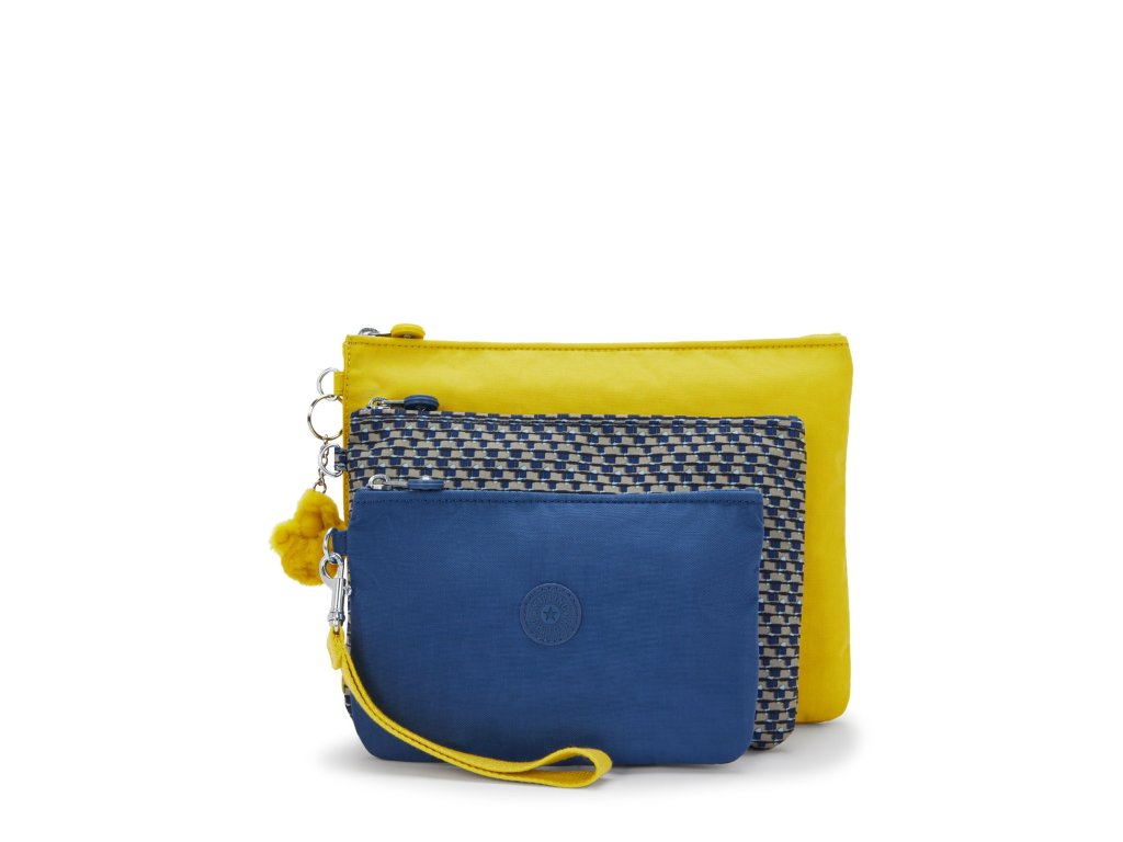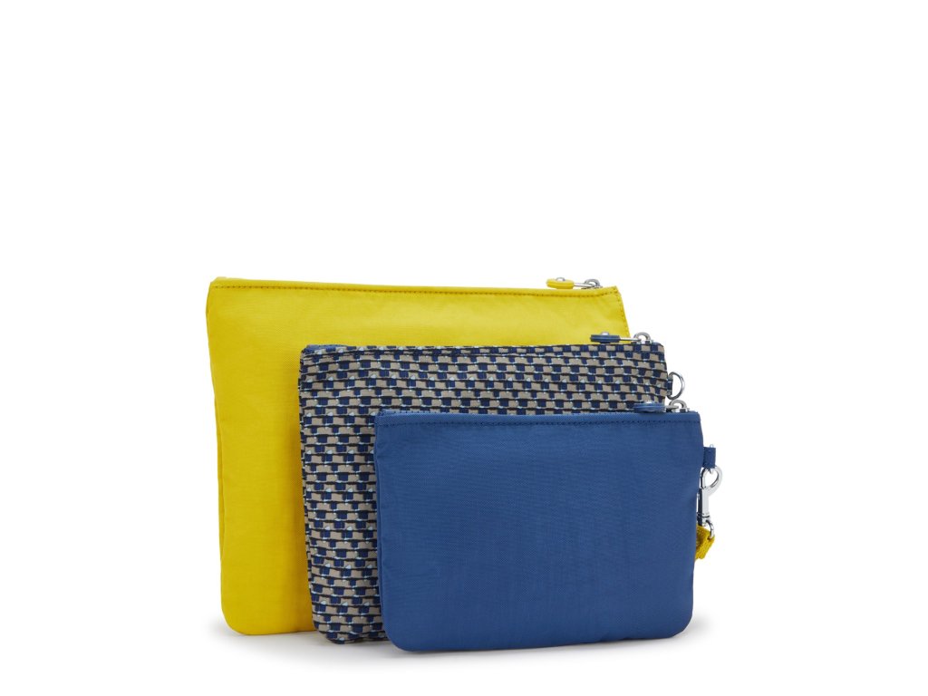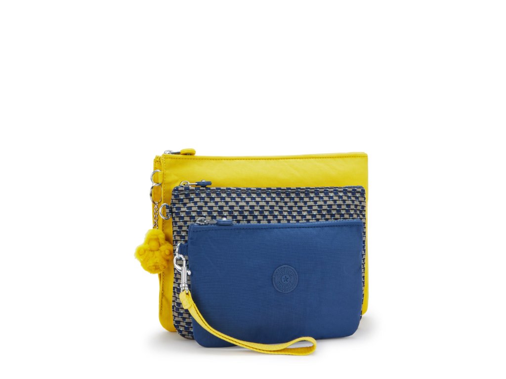 Sada troch samostatných puzdier Kipling IAKA L WRISTLET v odtieni Inside Yellow poskytuje praktické riešenie na organizáciu dokladov, kariet, kozmetiky a ďalších drobností. Vďaka odnímateľnému náramku wristlet je jednoduché puzdrá nosiť samostatne alebo pripojiť k batohu či kabelke. Každé puzdro má bezpečné zipsové uzavretie a prehľadné vnútorné usporiadanie, takže budete mať všetko vždy po ruke.