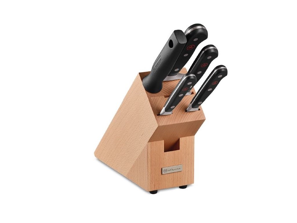 Prémiová súprava kuchynských nožov Wüsthof CLASSIC v elegantnom stojane z masívneho dreva prináša základné nože, ktoré potrebujete na každodenné varenie aj náročnejšie kulinárske výzvy.